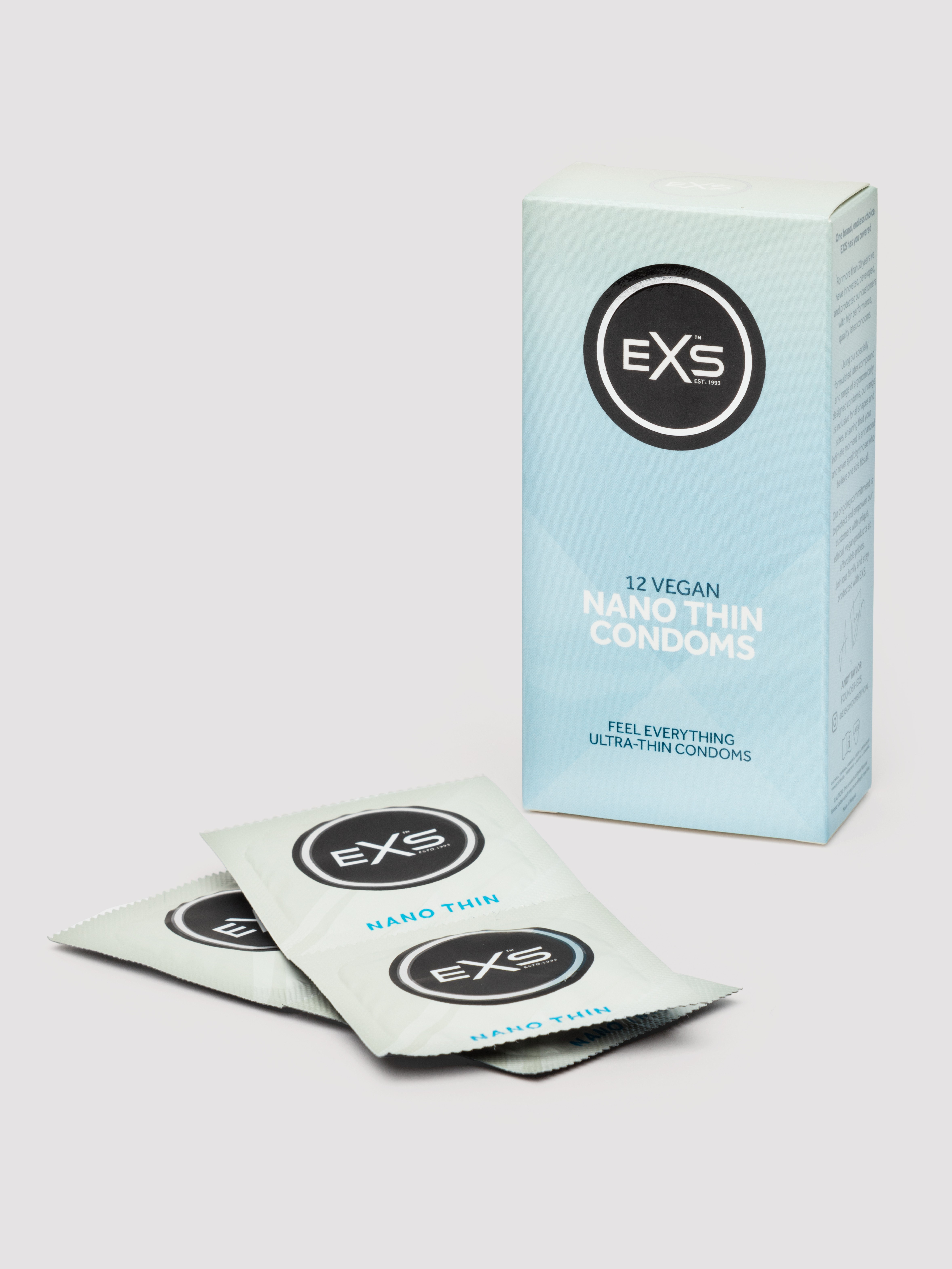 Designed for comfort, natural sensations and safe sex, EXS Nano Thin condoms are made from extra-thin latex and lubricated with a non-spermicidal silicone lube for longer-lasting pleasure.